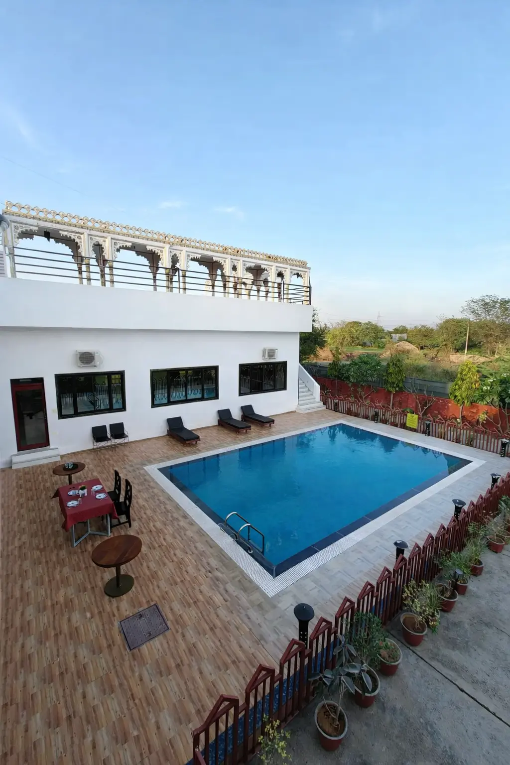 Whether you prefer a refreshing swim, a quiet evening by the water, or a fun time with family, our pool promises an unforgettable experience. Surrounded by elegant Rajasthani architecture and a soothing ambiance, it’s the ideal spot to rejuvenate your senses and elevate your stay.